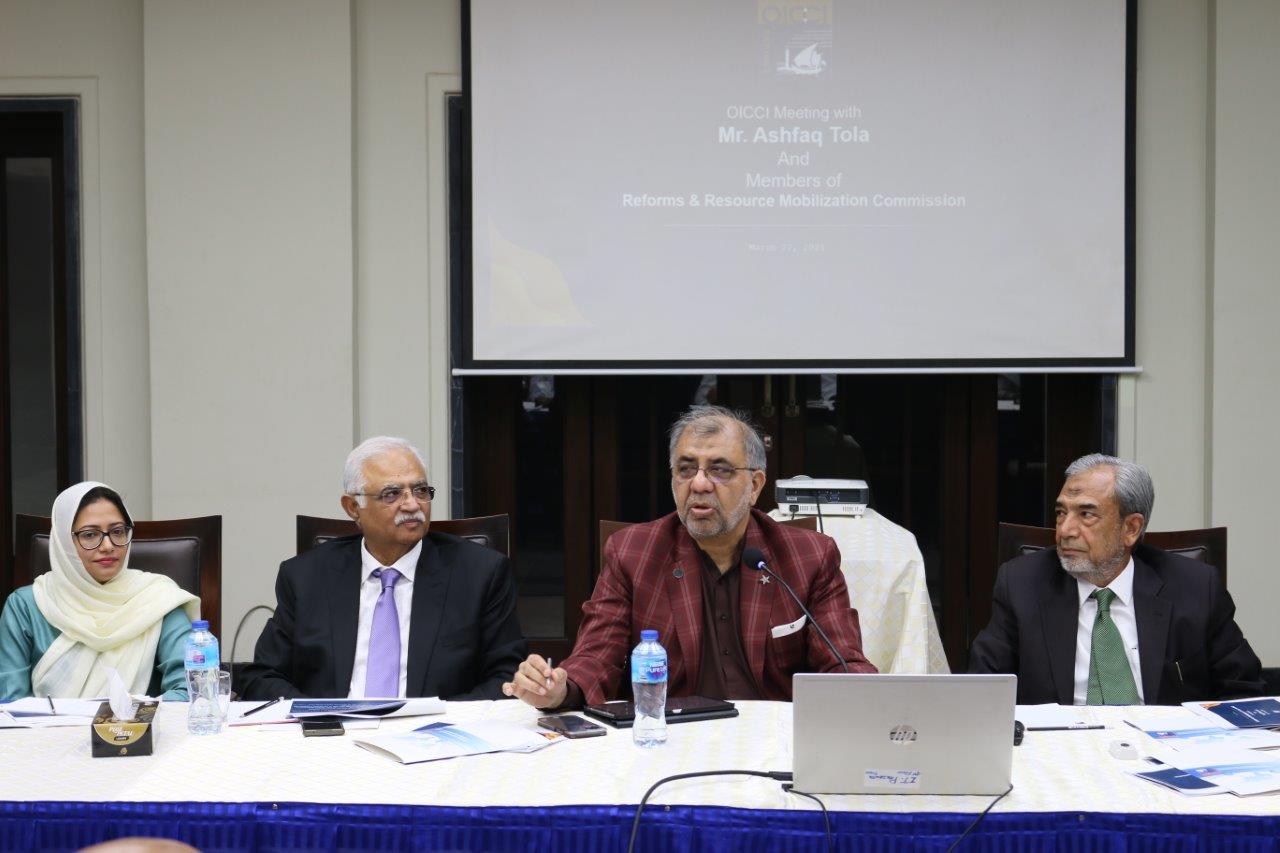 Chairman of the FBR Reforms and Resource Mobilization Committee (RRMC), Ashfaq Tola, along with RRMC Subcommittee members Abdul Qadir Memon, Asif Haroon, and Taha Khan Baqai, visited Overseas Investors Chamber of Commerce and Industry (OICCI) on March 22, 2023, for a joint meeting with CFOs and Tax Managers of OICCI member companies and members of OICCI Taxation Subcommittee. OICCI CE/Secretary General M. Abdul Aleem welcomed the honorable guests.