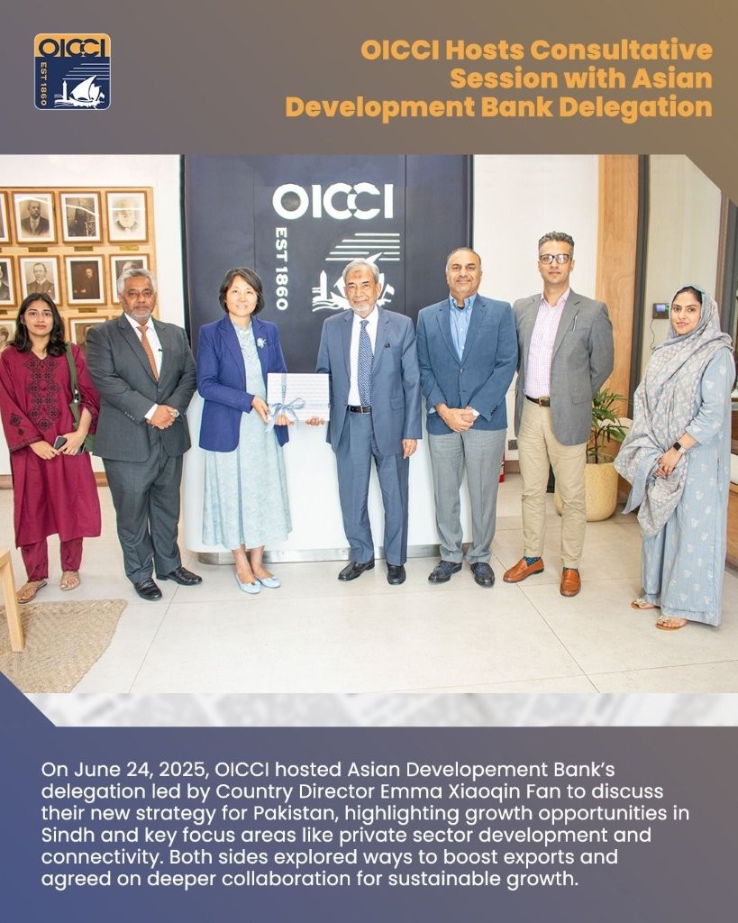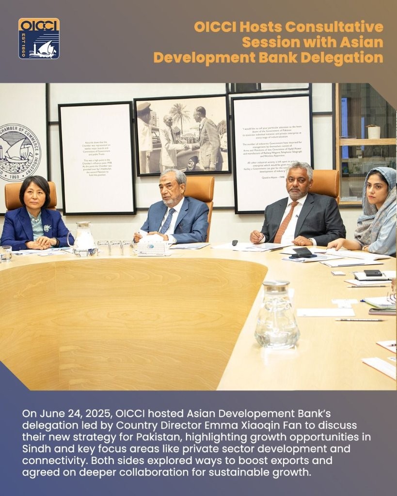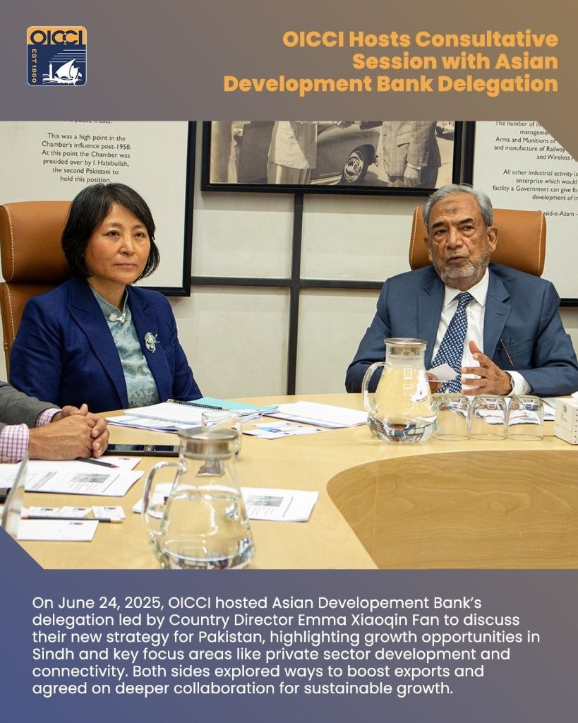The session concluded with an engaging discussion on Pakistan’s export potential across diverse sectors. OICCI highlighted the critical role of consistent, business-friendly policies and the need to broaden the country’s export base to include higher value-added and non-traditional sectors. The ADB expressed strong interest in deepening collaboration with OICCI as part of its strategic roadmap for Pakistan’s sustainable growth.