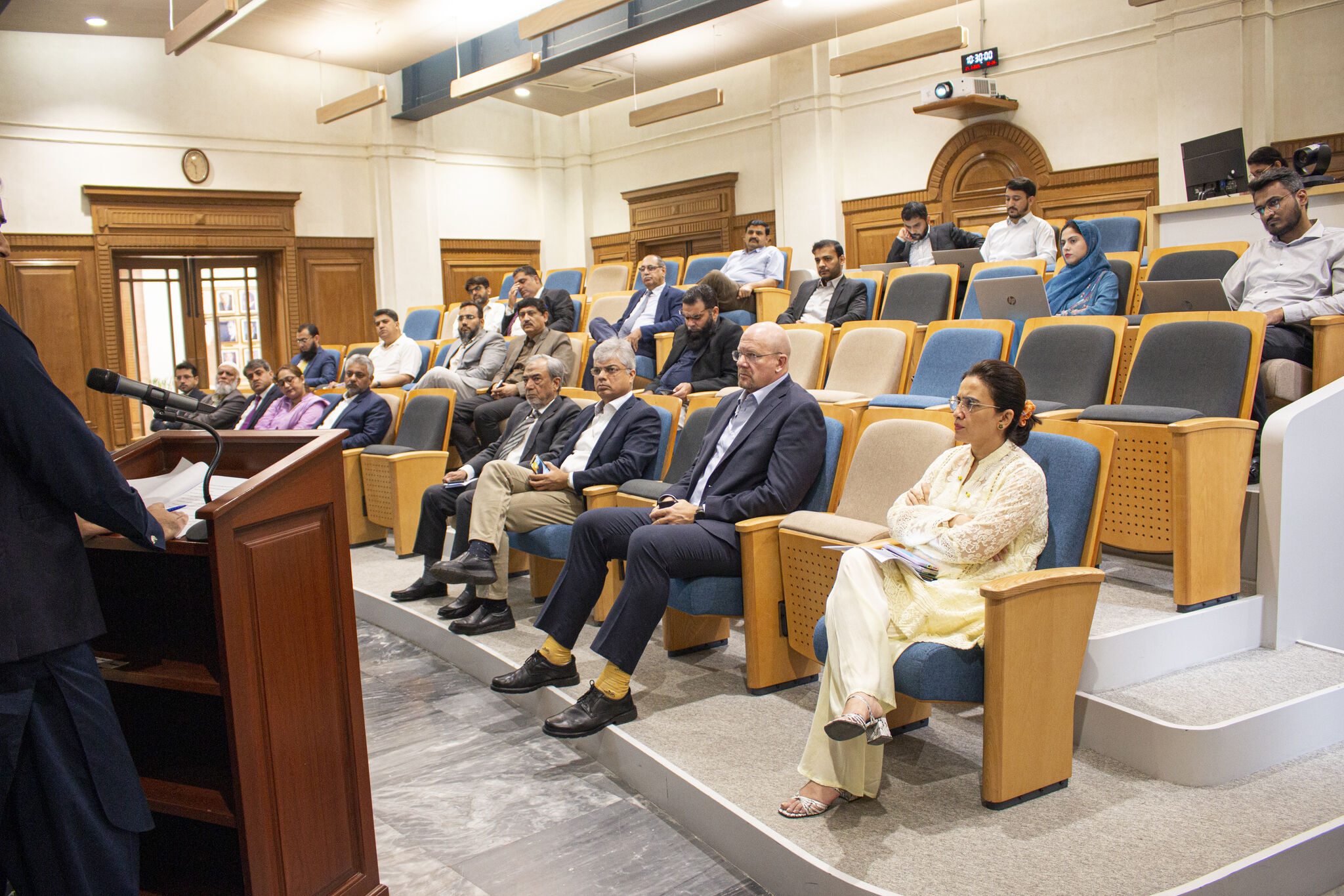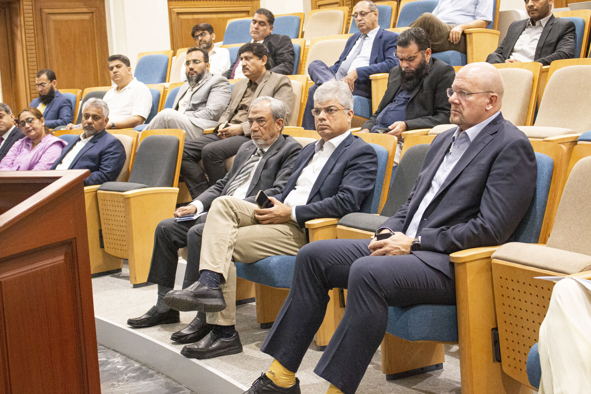 Fahad Hasan, Financial Sector Specialist at The World Bank, stressed that green financing is now a necessity. He described Green Taxonomy as a classification system that guides investors towards sustainable economic activities and shared global success stories from China, Bangladesh, and the EU. He noted that Pakistan is well-advanced in its Green Taxonomy journey, with SBP and the Ministry of Climate Change (MoCC) leading the efforts. He urged private investors to take an active role in financing the transition and highlighted the two key pillars: Mitigation (reducing climate risks) & Adaptation (ensuring resilience), along with fair Implementation.